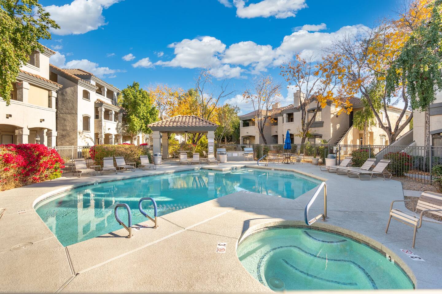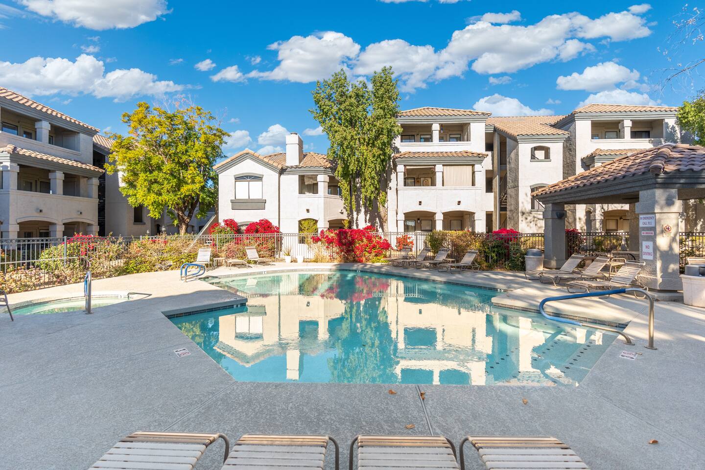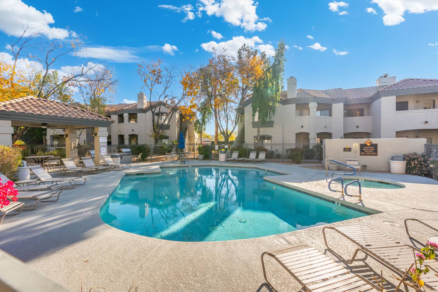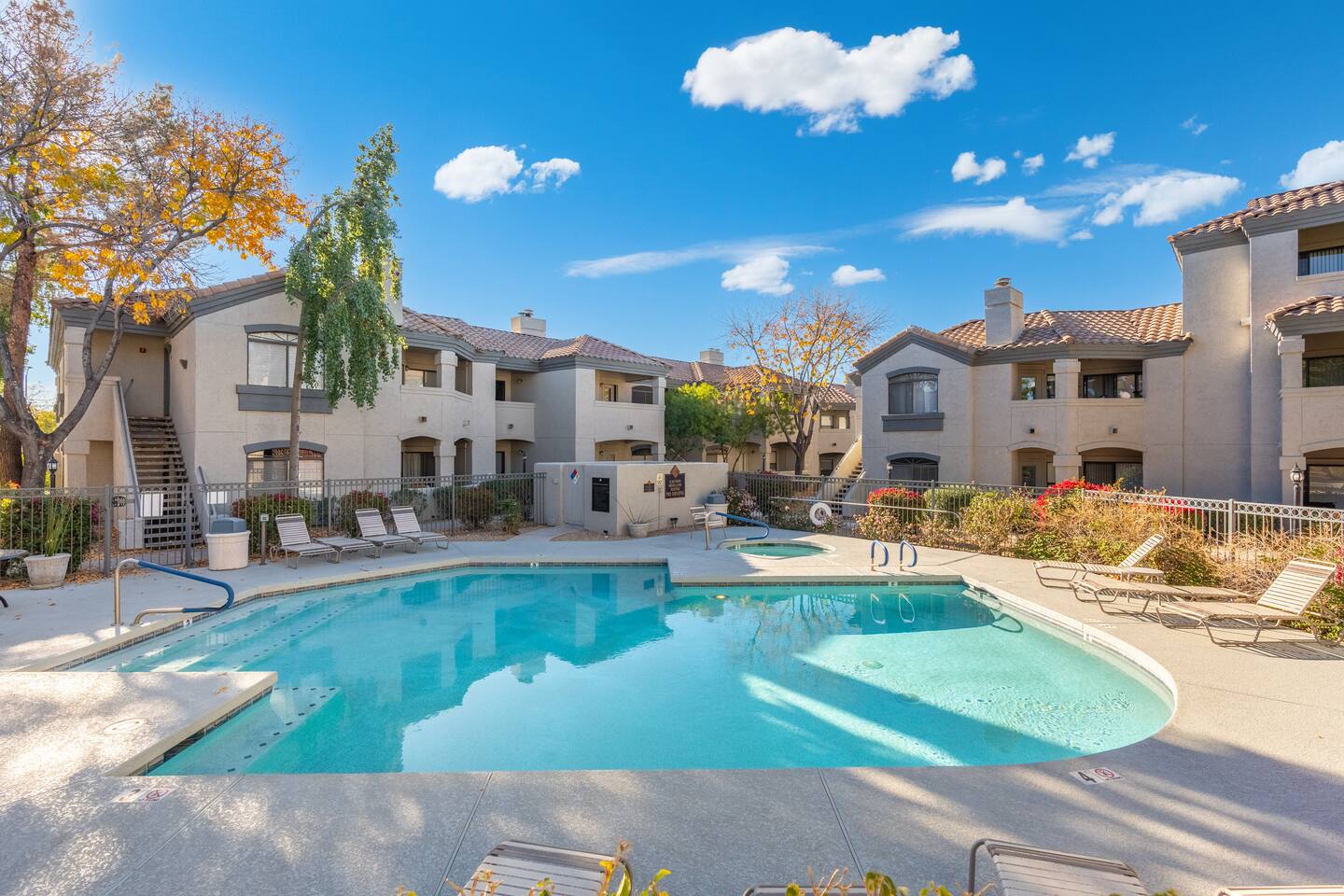 Property Highlights: Spacious Living Area: Unwind in the inviting living room, featuring modern furnishings and a flat-screen TV for your entertainment. Fully Equipped Kitchen: Cook up your favorite meals in the updated kitchen with stainless steel appliances, granite countertops, and all the essentials. Two Cozy Bedrooms: Sleep peacefully in the thoughtfully decorated bedrooms with plush beds, premium linens, and ample storage. Private Balcony: Soak up the Arizona sunshine or enjoy a quiet moment with your morning coffee. Community Perks: Resort-Style Amenities: The Signature Scottsdale community boasts two sparkling pools, a relaxing hot tub, a fitness center, and a clubhouse. Prime Location: Positioned directly off the 101, the condo is within walking distance of shopping, dining, and all the amenities you could need. Convenience at Your Doorstep: Just a short drive to Scottsdale's best golf courses, hiking trails, and attractions like Kierland Commons and Scottsdale Quarter. Whether you're here to explore, relax, or both, this 924 sq. ft. Scottsdale getaway offers everything you need for a memorable stay. Book now and make it your home away from home!