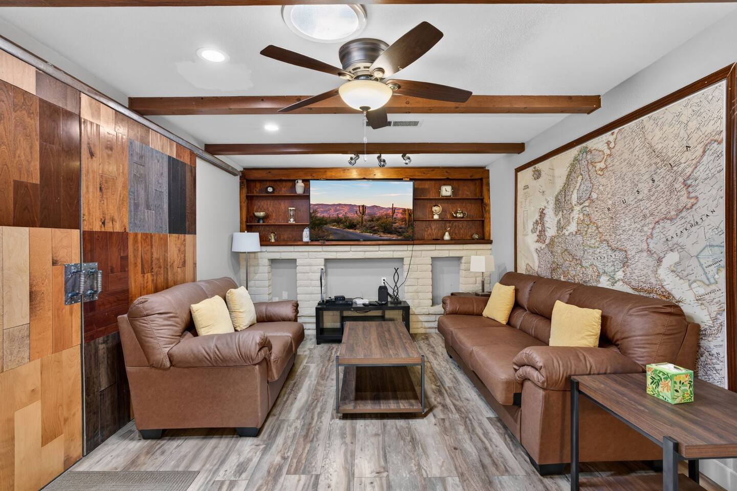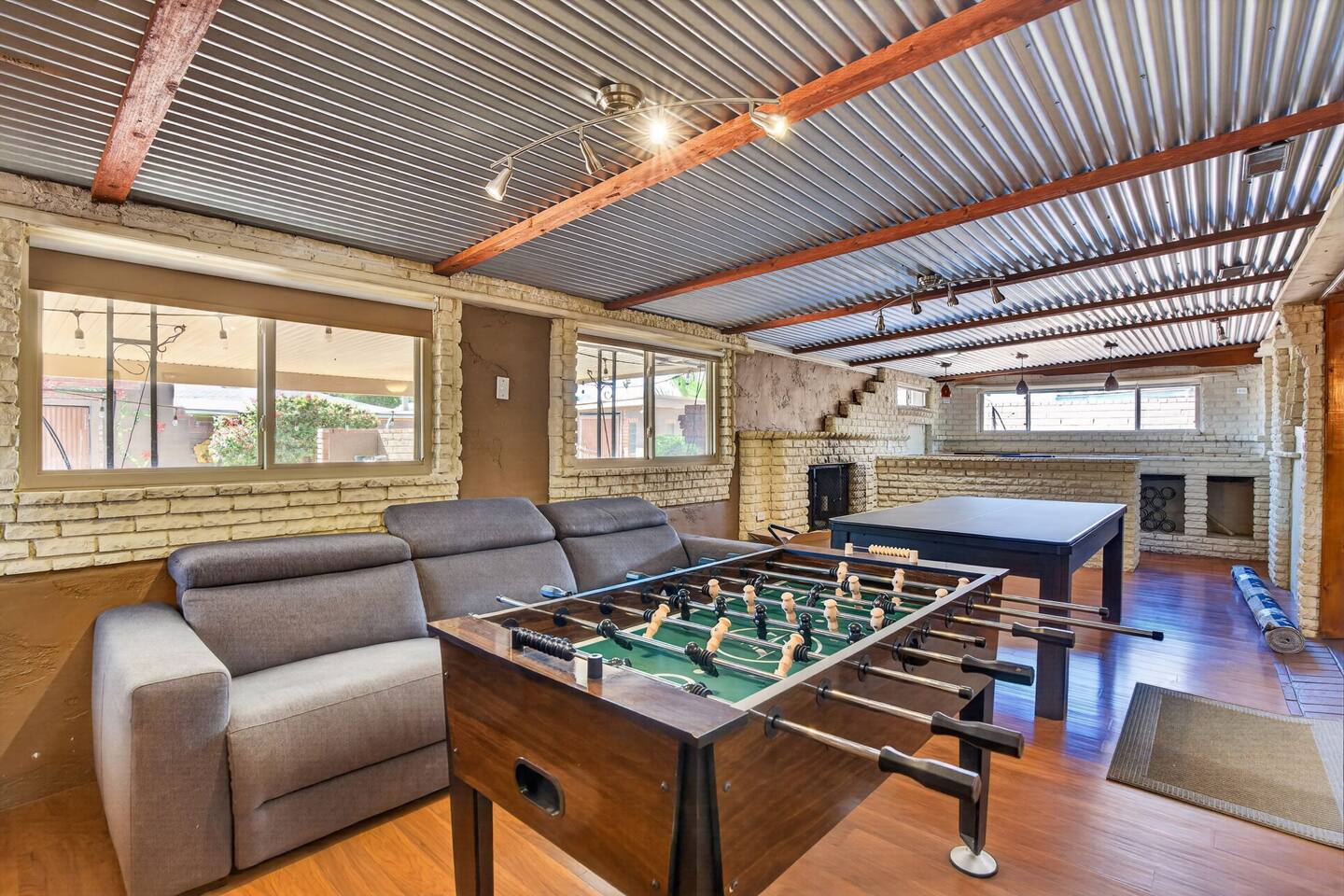This home offers a perfect blend of comfort, style, and functionality. designed to make every stay easy and enjoyable. The interior features a bright, open layout with modern finishes, warm wood accents, and thoughtfully designed living spaces that feel both inviting and spacious. Guests can relax in the comfortable living area, enjoy meals together in the dining space, or take advantage of the fully equipped kitchen for home-cooked meals. Each bedroom is designed with comfort in mind, featuring cozy beds, clean linens, and a calm, modern aesthetic. One of the standout features of the property is the dedicated game room, perfect for entertaining and unwinding. With activities like ping pong and foosball, along with a lounge area and bar-style setup, it’s an ideal space for groups, families, or anyone looking to have fun during their stay. The home also includes multiple updated bathrooms, providing convenience and privacy for larger groups. Whether you're here to relax, explore Scottsdale, or spend time with friends and family, this property is designed to give you a comfortable and memorable experience.