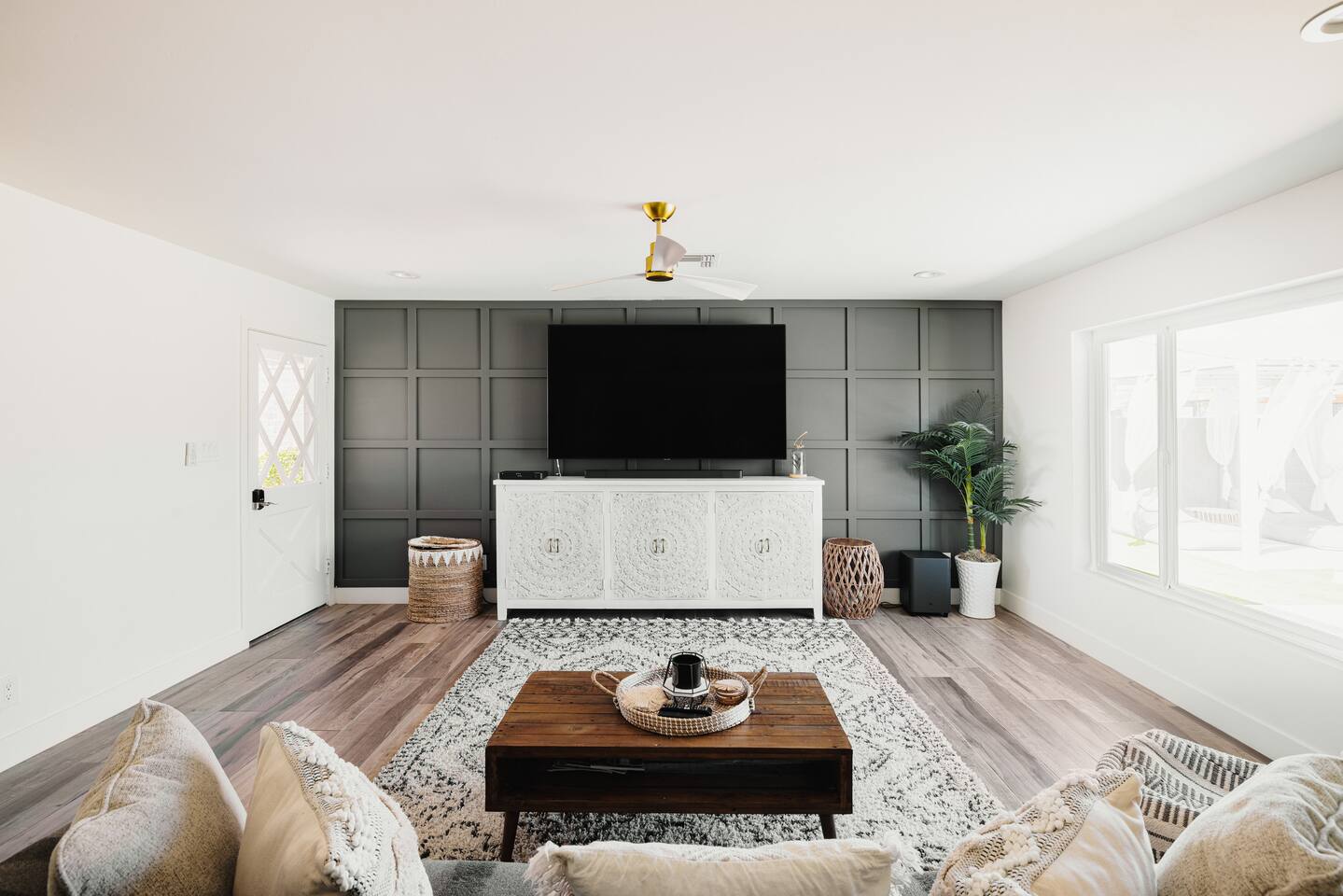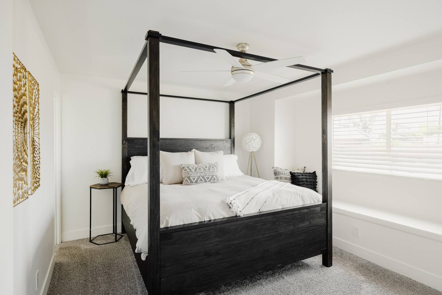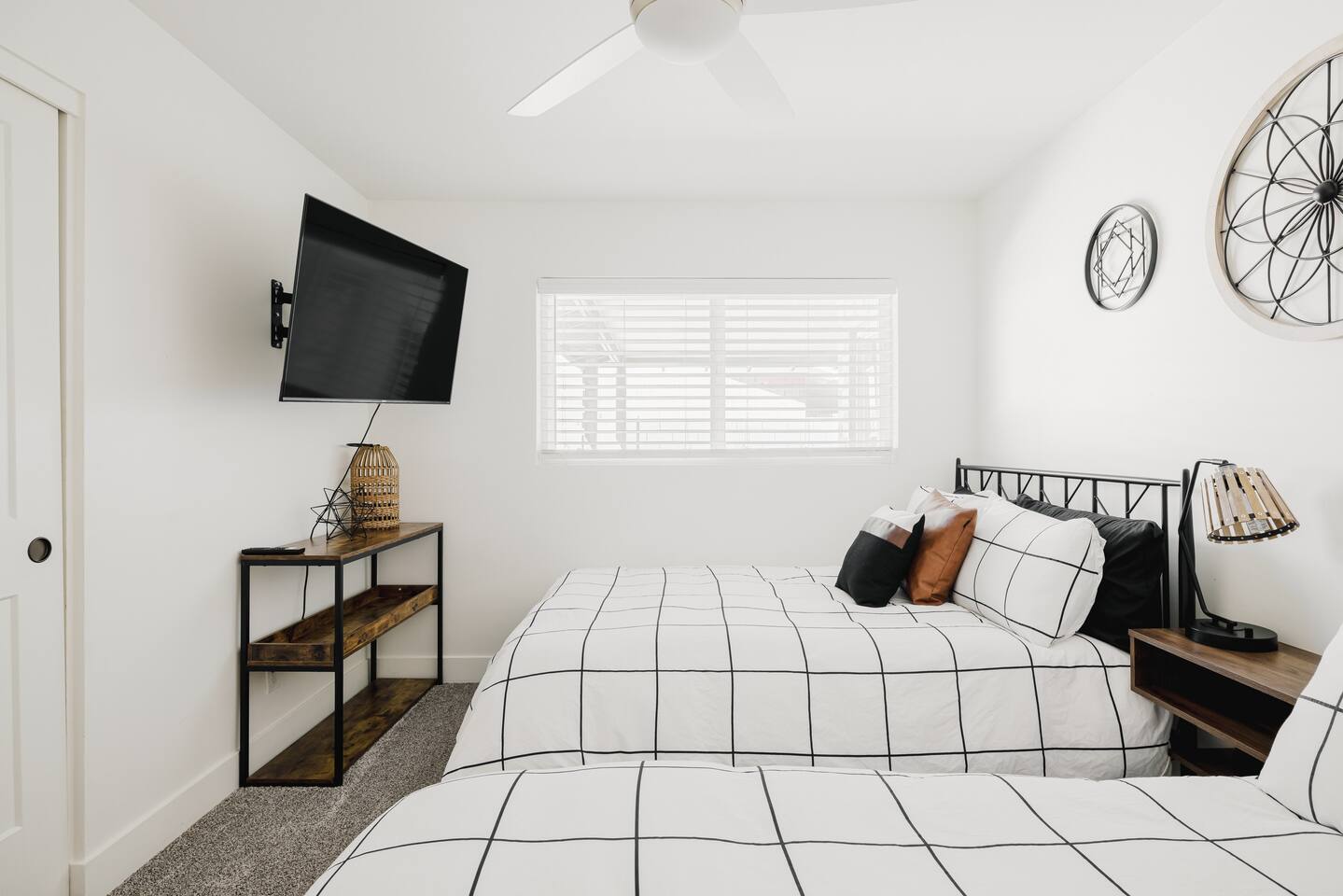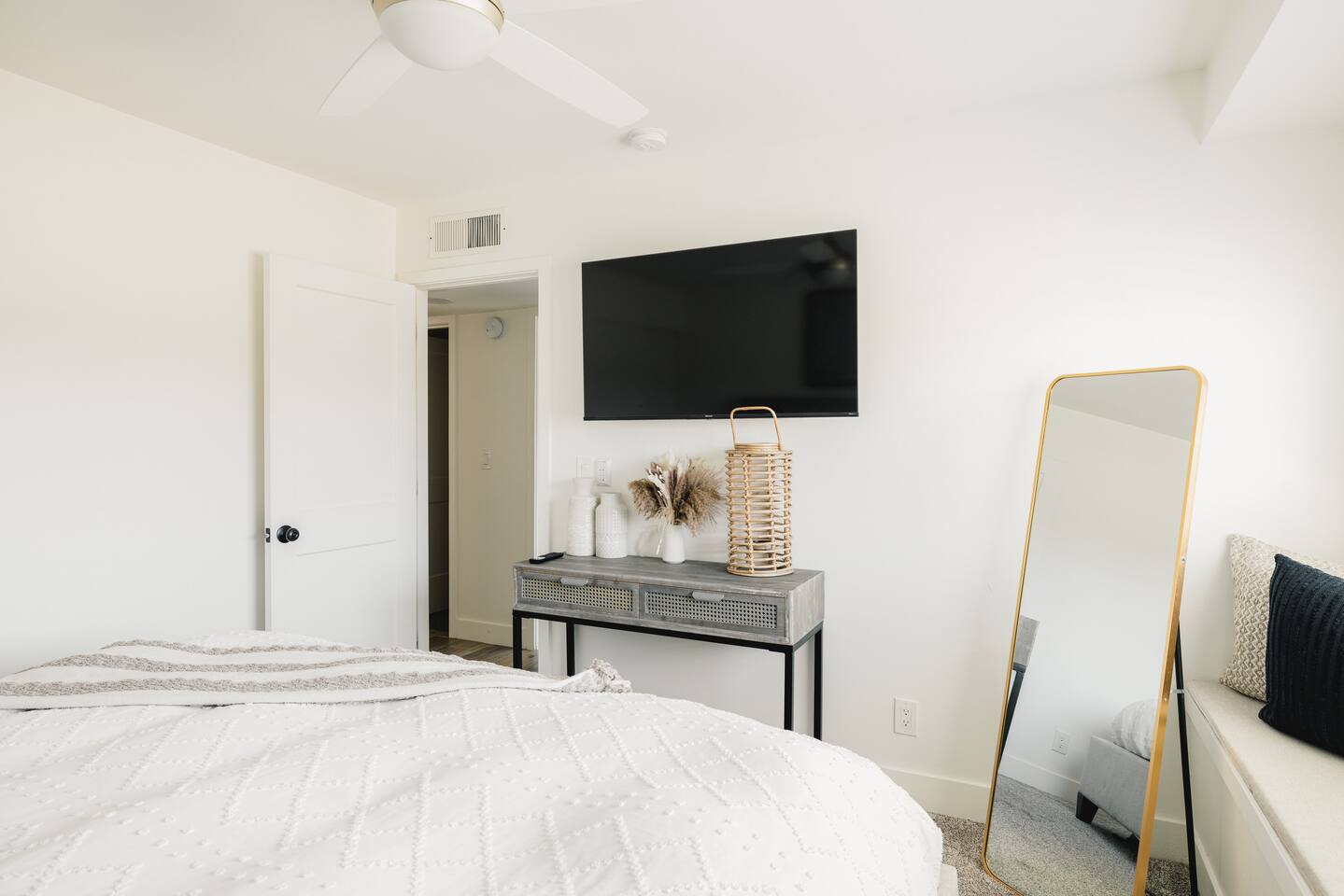 As you step inside, you'll be greeted by a beautifully renovated interior featuring designer tile in both bathrooms, brand new finishes, and a kitchen that boasts cream shaker cabinets, quartz countertops, bar seating, and stainless steel appliances. The kitchen seamlessly flows into the dining and living areas, making it perfect for entertaining guests or enjoying a quiet night in. Outside, you'll find a luxurious pool and a green lawn, creating a backyard oasis that's perfect for relaxing or soaking up the Arizona sun. Charming touches like window seats, wood plank tile, and bright walls tie it all together, creating a warm and inviting atmosphere. Whether you're here for a weekend getaway or an extended stay, our home offers the perfect blend of comfort and convenience for your stay in Scottsdale. We can't wait to host you!