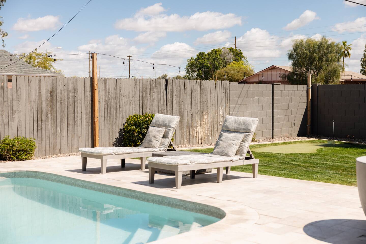 Guests will have access to the entire home, including the garage, where you can park your car or store your golf clubs. The backyard features a putting green where you can practice your short game, as well as a luxurious pool perfect for a refreshing swim or lounging in the sun. Enjoy the privacy and comfort of the entire property during your stay.